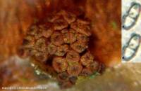 Les ascospores hyalines, cloisonnées, 9-12 X 3-5 µm formant des ascoconidies de 3-4 x 1µm finissent par remplir les asques.