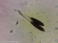 Phargmidium rosae-pimpinellifoliaevient de préférence sur Rosa spinosissima et a des téleutospores brun châtaigne généralement septées 6 fois.