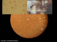 Arrondies, lisses, subglobuleuses, hyalines, a parois legèrement épaisses, 5-6- (7 )x 4-5-( 6 )µm, non dextrinoides, I-. Basides clavées, hyalines, 12-15 (20) x 6,7 (9 )µm, tetrasporiques, non bouclées. Pas de cystides. Spinules fauve brun, 12-22 x 6-8 µm, ovoïdes, subulees. Dimitique :