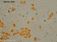 5-6 x 3-4 µm, largement elliptiques à ovales, lisses, hyalines, parfois guttulées.