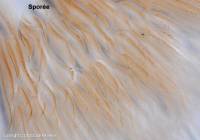 4-5-(5,5) x (3)-3,5-4 µm, pruniformes. Suprapellis confus, à hyphes serrées subdiverticulées ou noduleuses, parfois un peu congophobes ou réfringentes. Médiopellis plus congophile et plus ou moins aérifère.