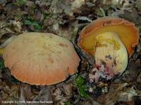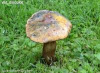 Sutorius luridiformis, cuticule jaune orangé et stipe pâle.