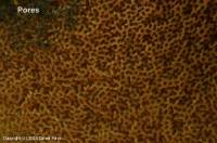 Cuticule formée d'hyphes dressées à extrémités fusiformes ou cylindriques, non bouclées, plus ou moins pigmentées de brun, larges de 3-8 µm.