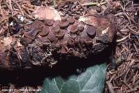 Sur écailles de cônes d'Abies alba.