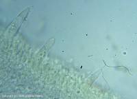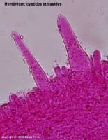 Caulocystides subulées à base élargie, peu ou non incrustées.