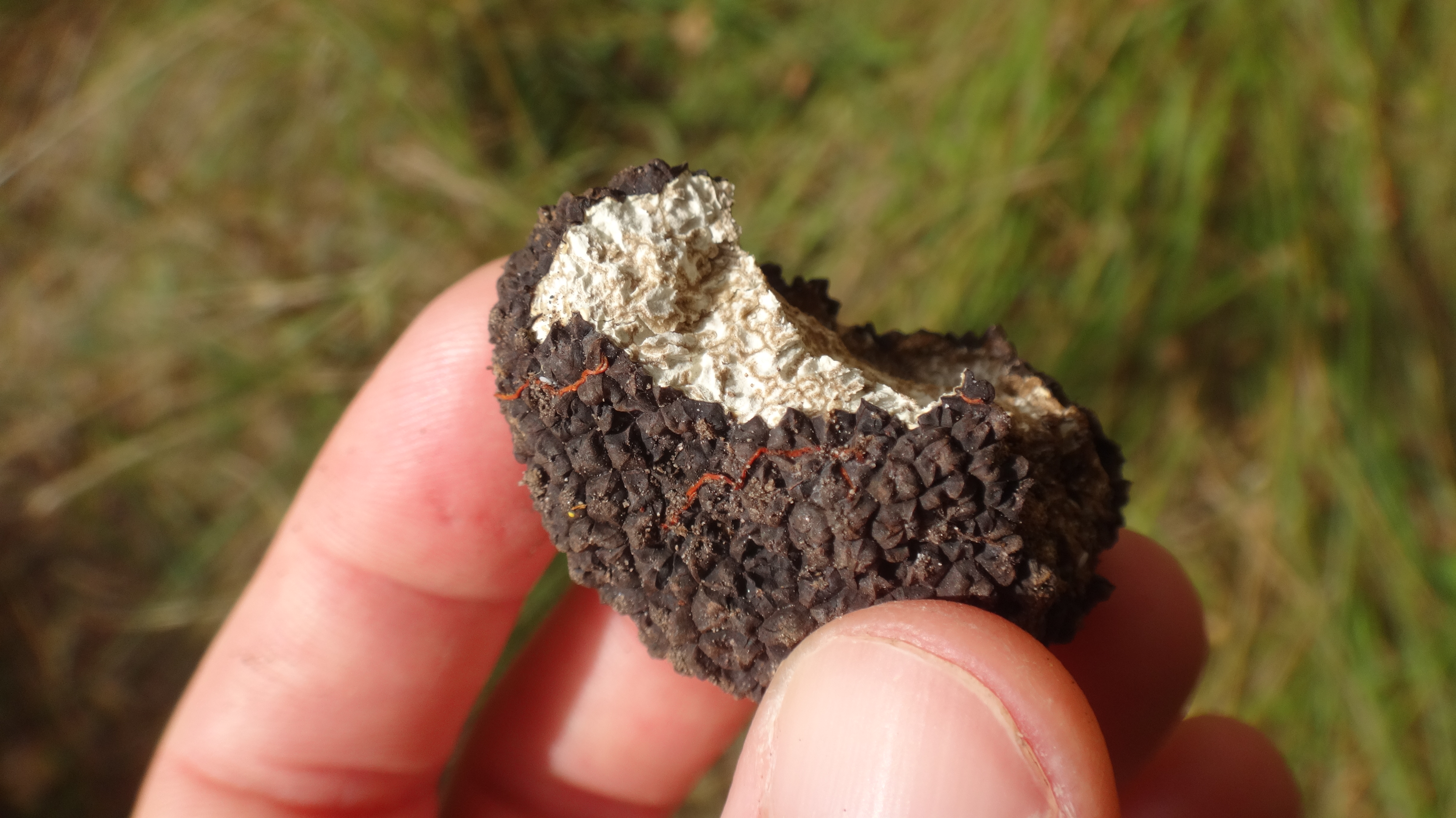 Par contre je vous mets aussi une photo de ce qui ressemble à un champignon, que j'ai trouvé au sol, sec, sur un sentier de forêt mixte en pied de falaise. ça sentait très fort et j'aurais du mal à dire que ça sentait bon, mais l'odeur était "intéressante".