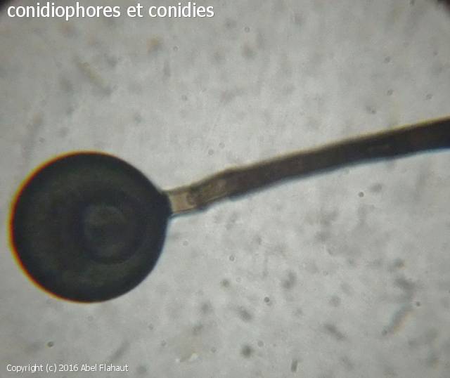 Conidies sphériques à subsphériques, mesurant 15-33 × 14-33, tronquées à la base.
