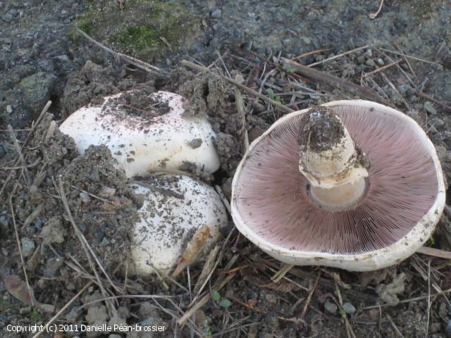 Agaricus bitorquis var. validus : fort rougissement de la chair à la coupe.