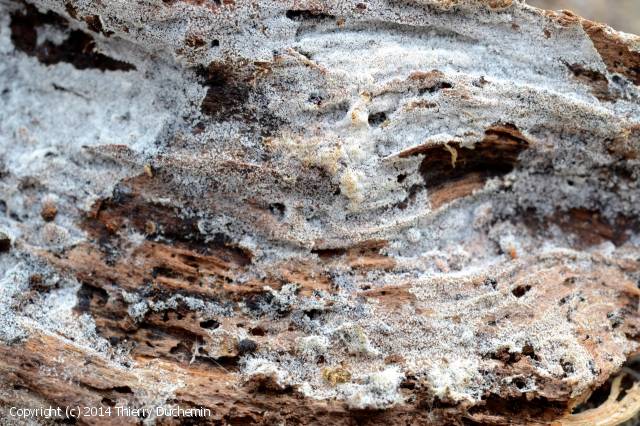 Sur bois pourris, souches et branches tombées d'arbres à feuilles ( Fagus ) ou à aiguilles, bois travaillés, carbonisés, également sur polypores.