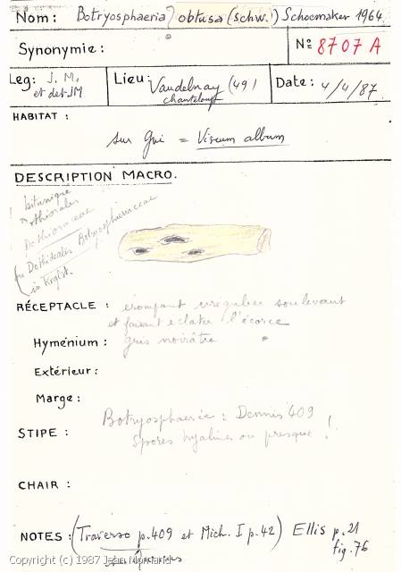 Botryosphaeria obtusa (Schweinitz) Shoemaker (1964), Canadian journal of botany, 42, p. 1298 (nom actuel)