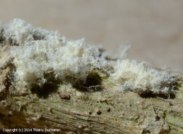 Forme étendue ressemblant un peu à une toile d'araignée ou en colonies duveteuses, subfarineuses, sur la surface de la plante, blanc à blanc-gris sale.