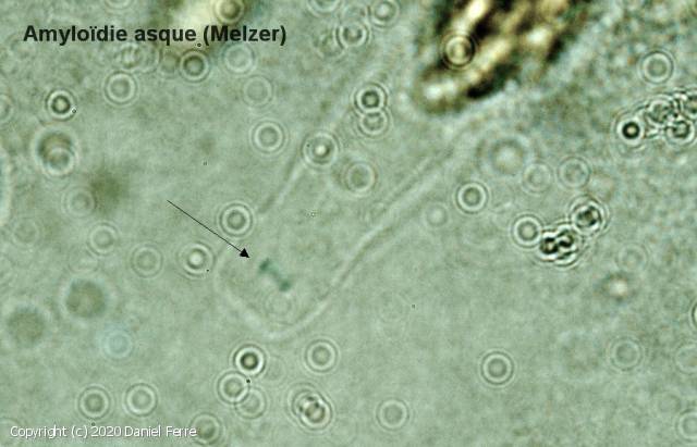 Asques longuement pédicellés, multisporés, (16)-32 spores, faiblement amyloïdes.