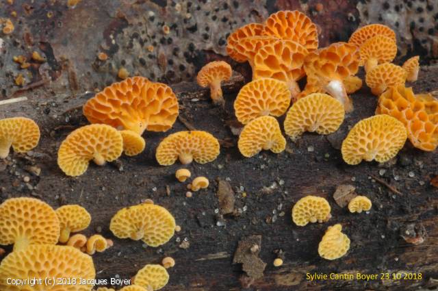 Favolaschia claudopus espèce néo-zélandaise et australienne, se retrouve aussi en Europe.