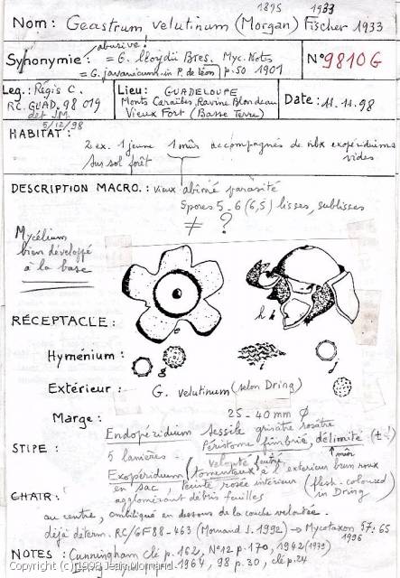 Geastrum velutinum Morgan (1895), Journal of the Cincinnati Society of natural history, 18(1-2), p. 38 (Basionyme)