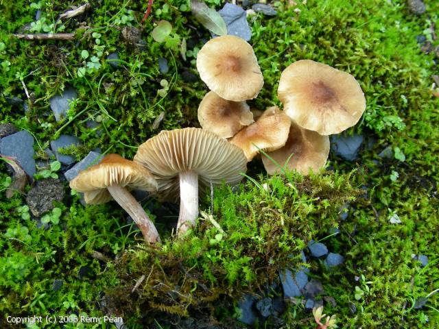 Marasmius oreades (Bolton:Fr.) Fr. même habitat; grossièrement même allure mais le pied très coriace lève le doute.