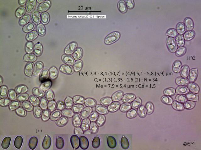 Spores mesurant 7-8,5 x 4-5 μm (d'après Tanchaud), amyloïdes.