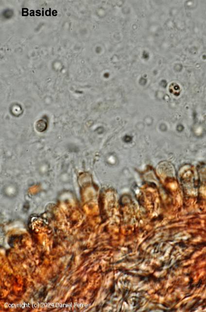 Basides elliptiques à clavées, tétrasporiques, 12-18 x 4-5,5 µm.