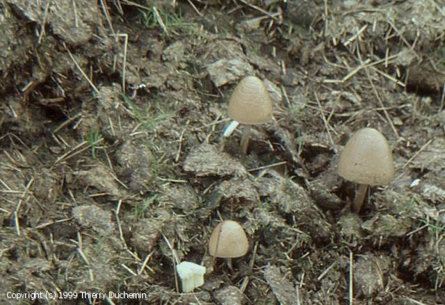 var. phalaenarum = sans anneau, stipe strié longitudinalement & sur crottin de cheval - Microscopiquement semblable à Panaelolus semiovatus