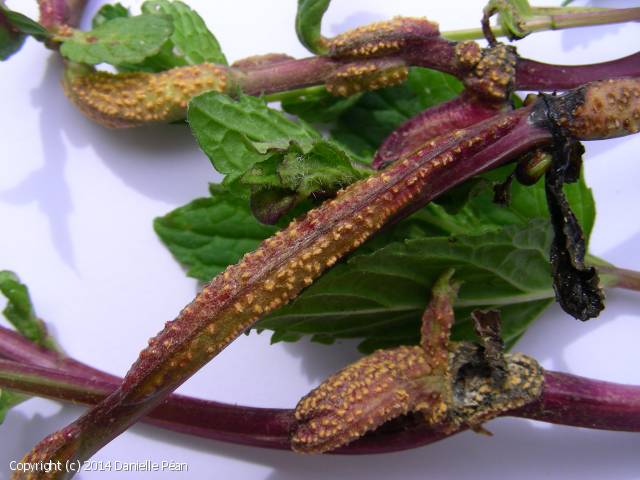 Sur feuilles, tiges et pétioles de toutes sortes de menthes (sauvages ou de jardin), y compris, Mentha (aquatica, arvensis, longifolia, rotundifolia, spicata). Se produit également sur Calamintha et sur Clinopodium vulgare.