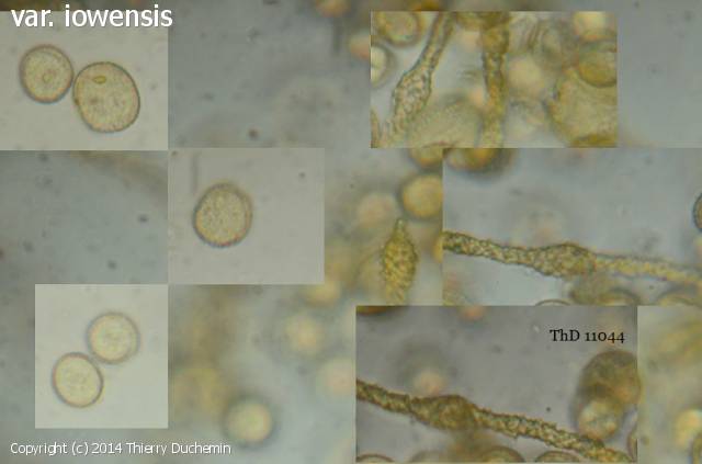 Spores en masse jaune d'or à jaune brunâtre, spinuleuses ou finement verruqueuses, de 11 à 14μm de diamètre.