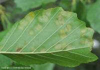 Provoque des taches jaunes peu épaisses déprimant la feuille.