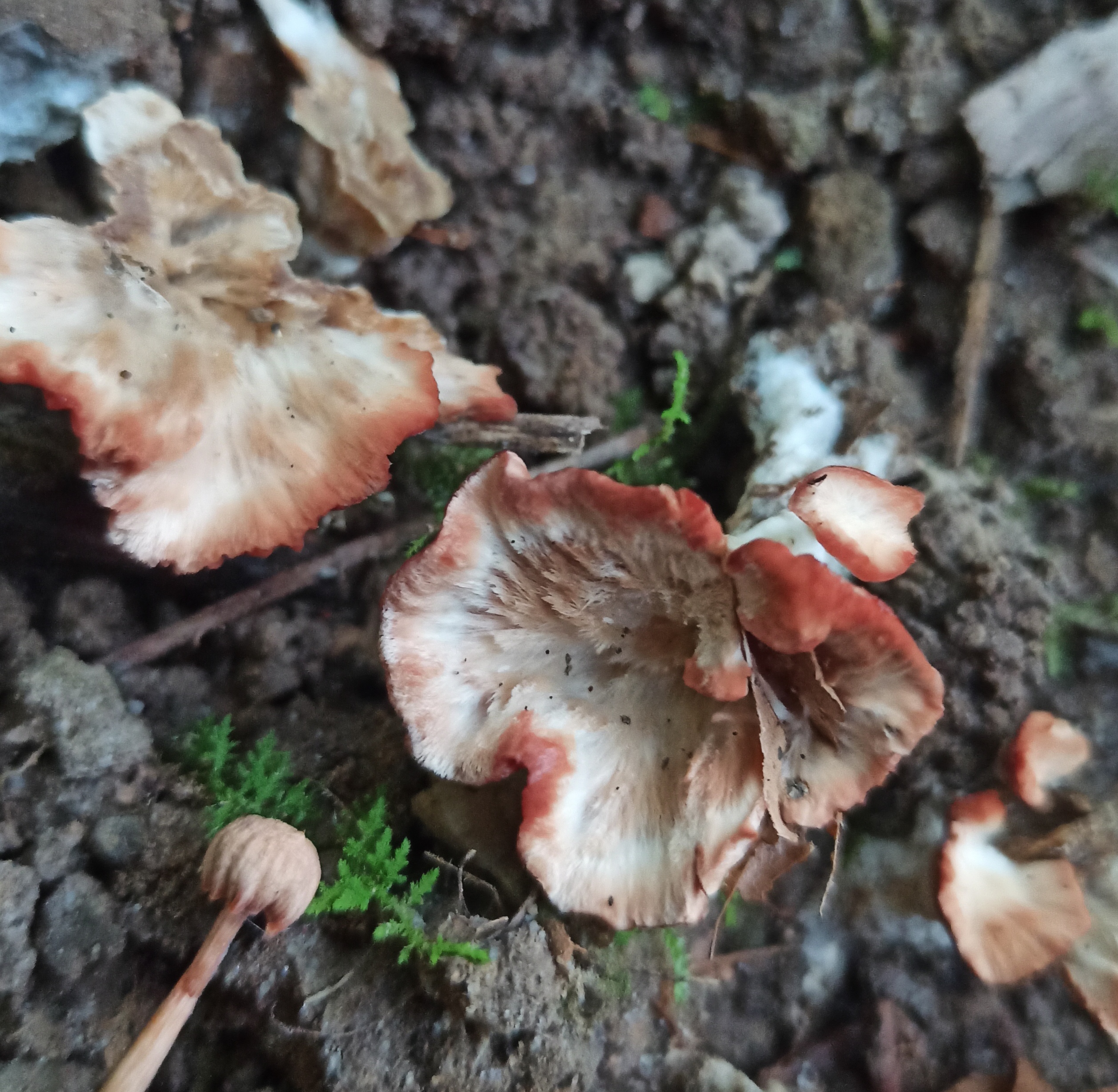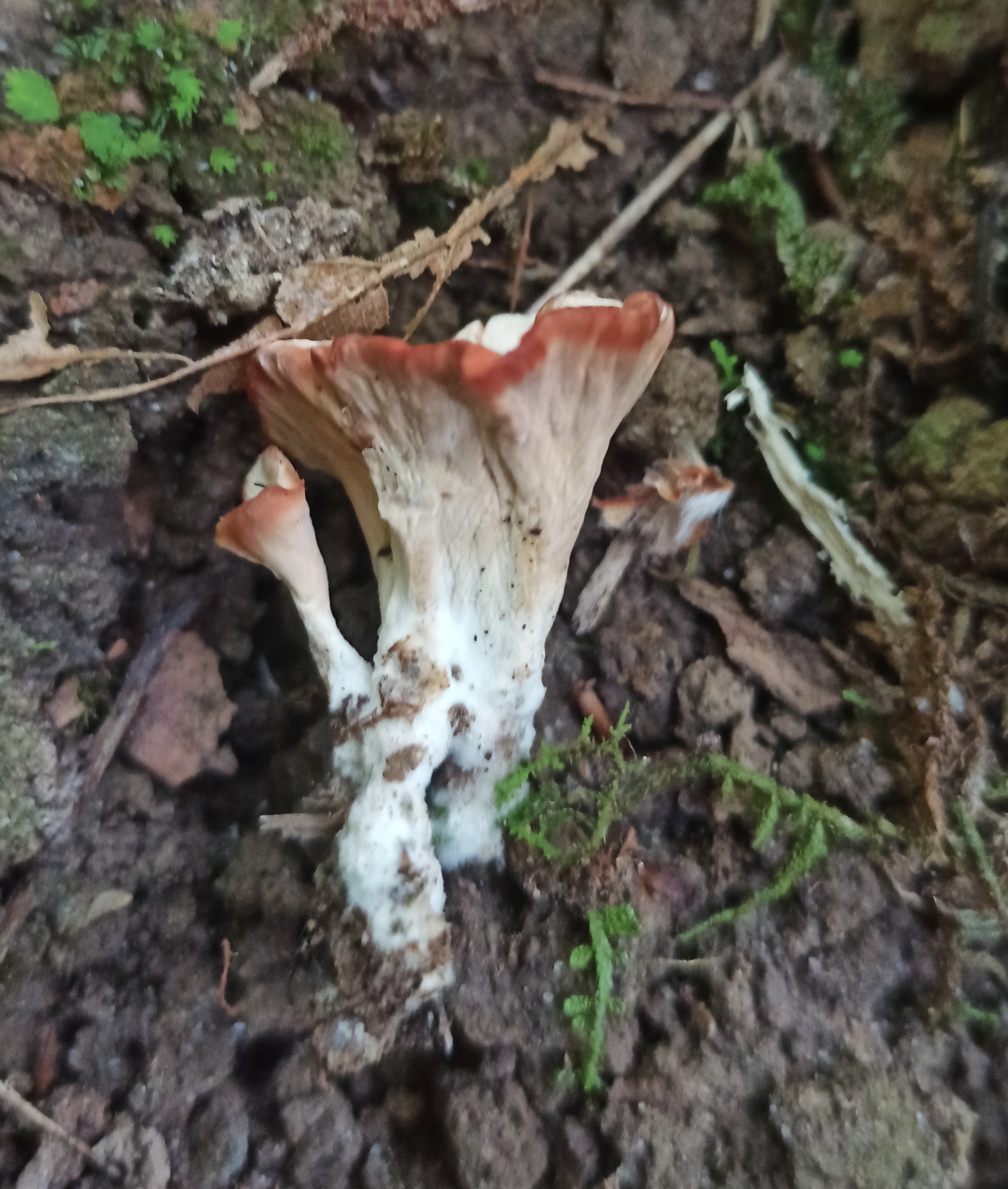 Bonjour, J'ai trouvé ce champignon ce weekend, sous les châtaigniers. Après recherches, le champignon qui y ressemble le plus est la chanterelle violette, mais je ne pense pas que c'en soit une. Votre aide serait la bienvenue ^^