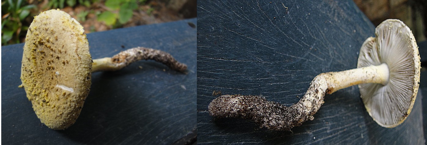 La consistance de la chair et la taille de cette espèce chapeau de sept à huit cm de diamètre fait plutôt penser à une Amanite qu'à une Lépiote. Sporée blanche