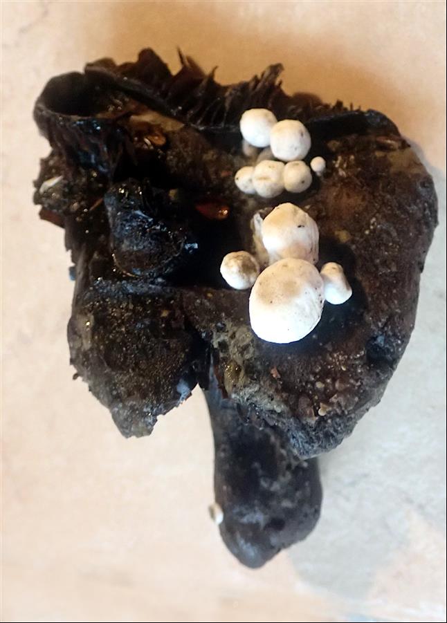 Très étonné par ces petits champignons, déjà vus en nombre la semaine dernière sur ce qui semble être une russule. Je ne me rappelle pas les avoir rencontrés précédemment ...