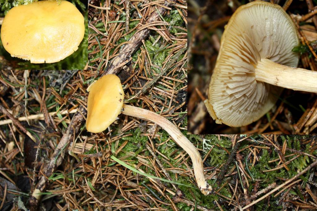 Dimensions : Chapeau 3,5 cm de diamètre, stipe 8,5 cm, odeur de champignon et de terre. Il fructifiait seul à 1250 mètres d’altitude dans une mousse profonde. Seul le chapeau sortait. La saveur sans être amère est légèrement piquante, les lames sont cassantes.
