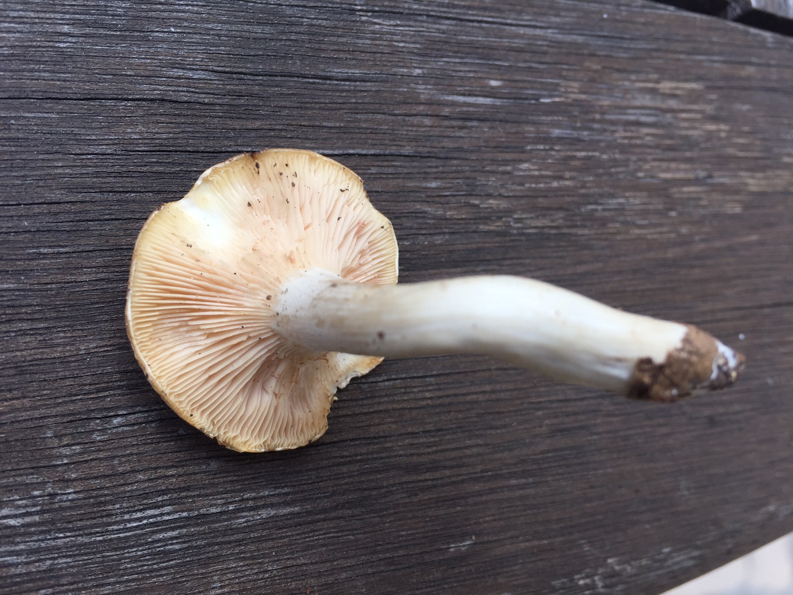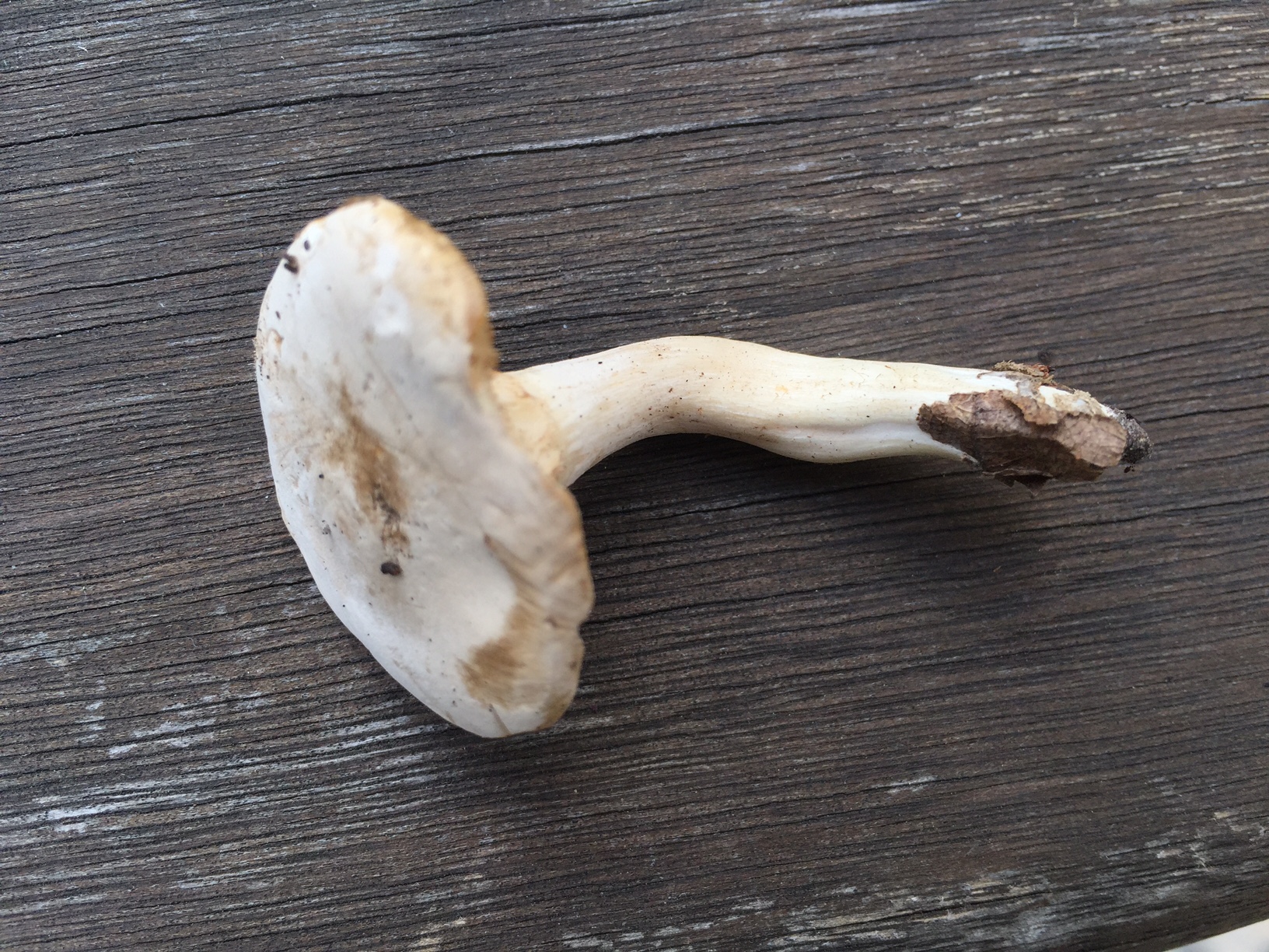 Trouvés en forêt sous feuillus, chapeau gris-crème et lames légèrement rosissantes, de petite taille (4-5cm), odeur spermatique forte.