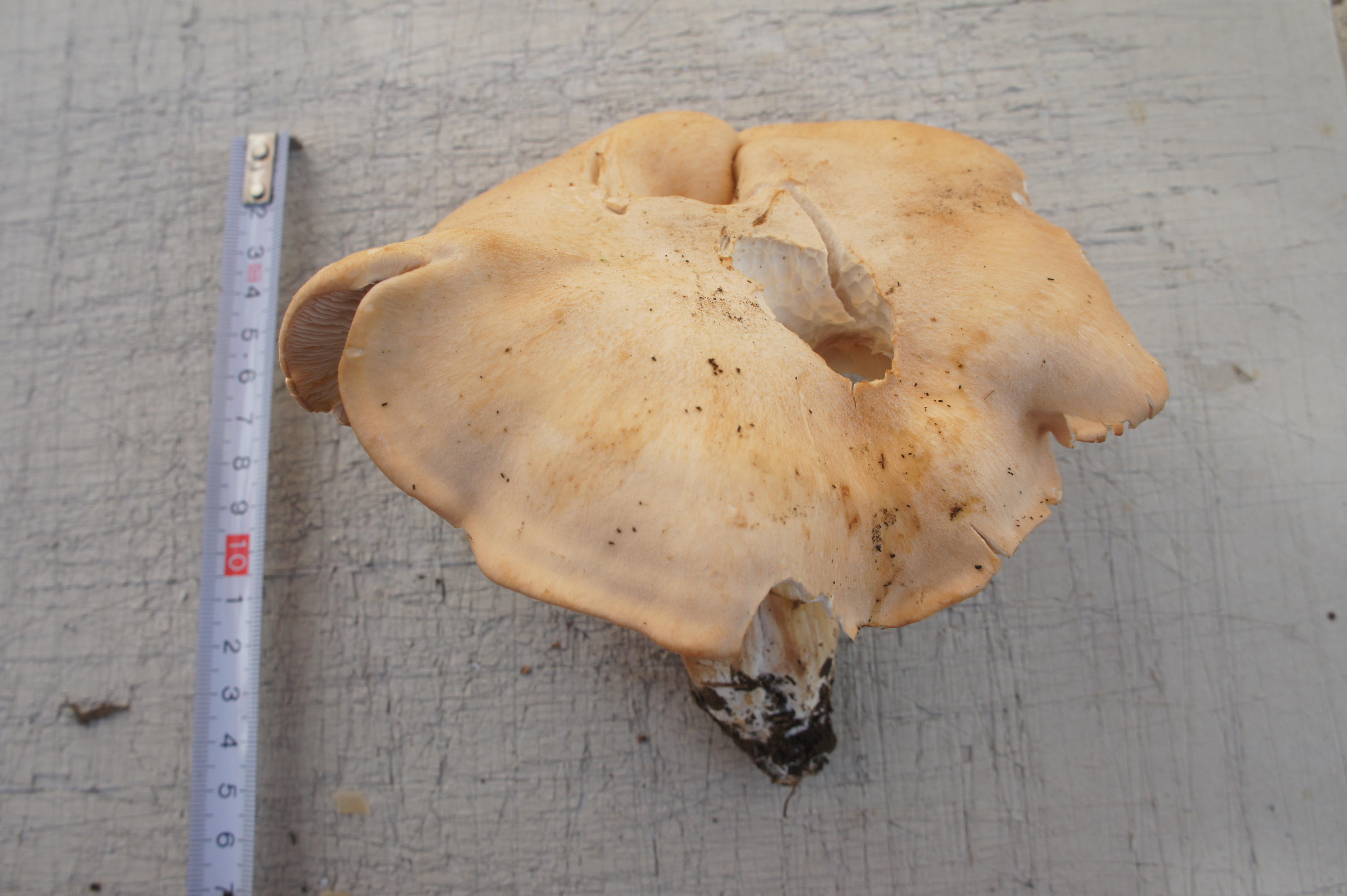 Il faudrait voir le dessous et savoir son odeur. Chair résistante, élastique? Peut-être Rhodocybe truncata??? sans certitude. Très loin des russules... jean pierre