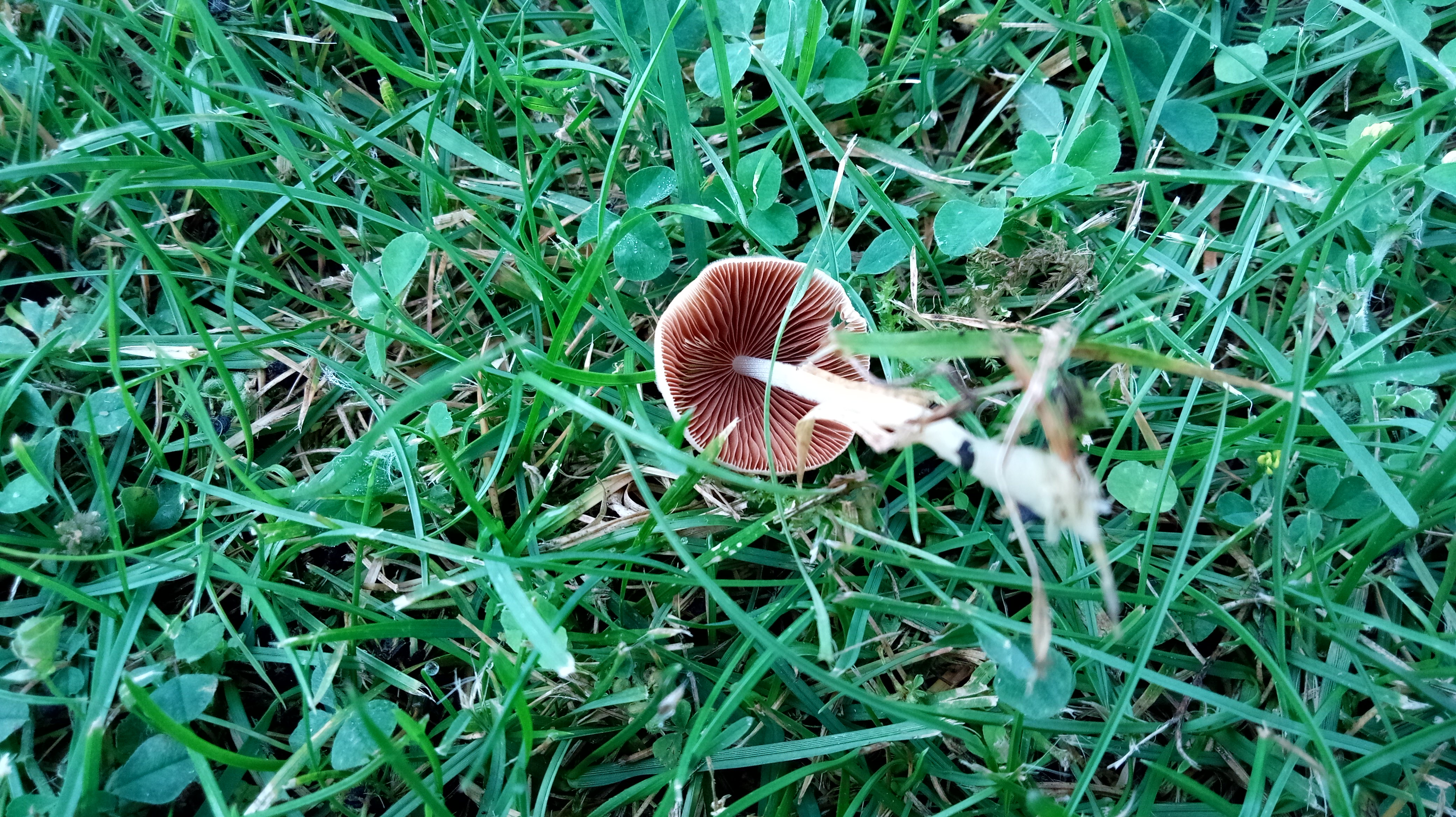 Pour moi allure de Conocybe. Conocybe apala??? À voir la différence de la couleur de l’herbe entre les deux clichés je suis sûr que les lames ne sont pas rose bonbon.