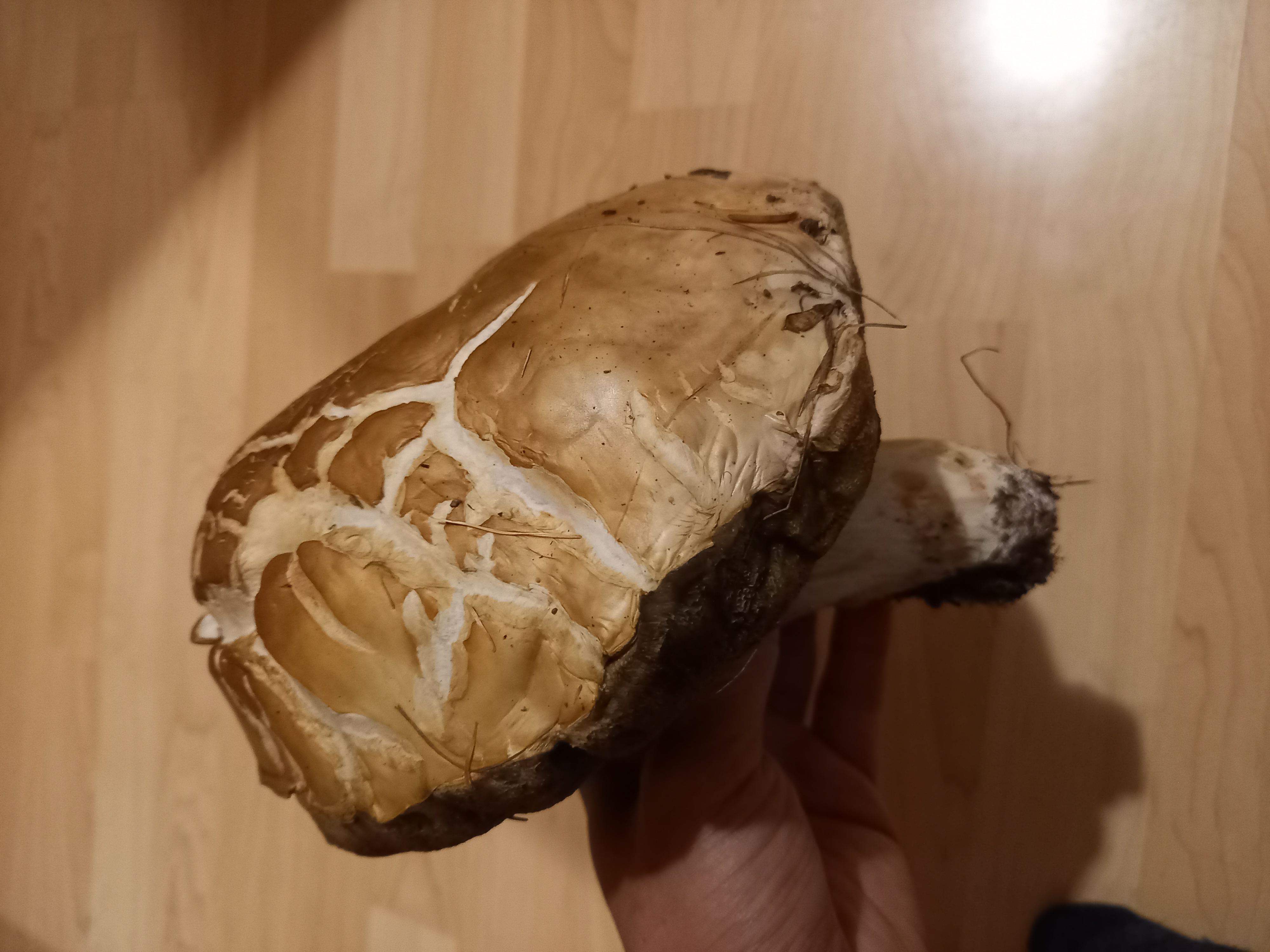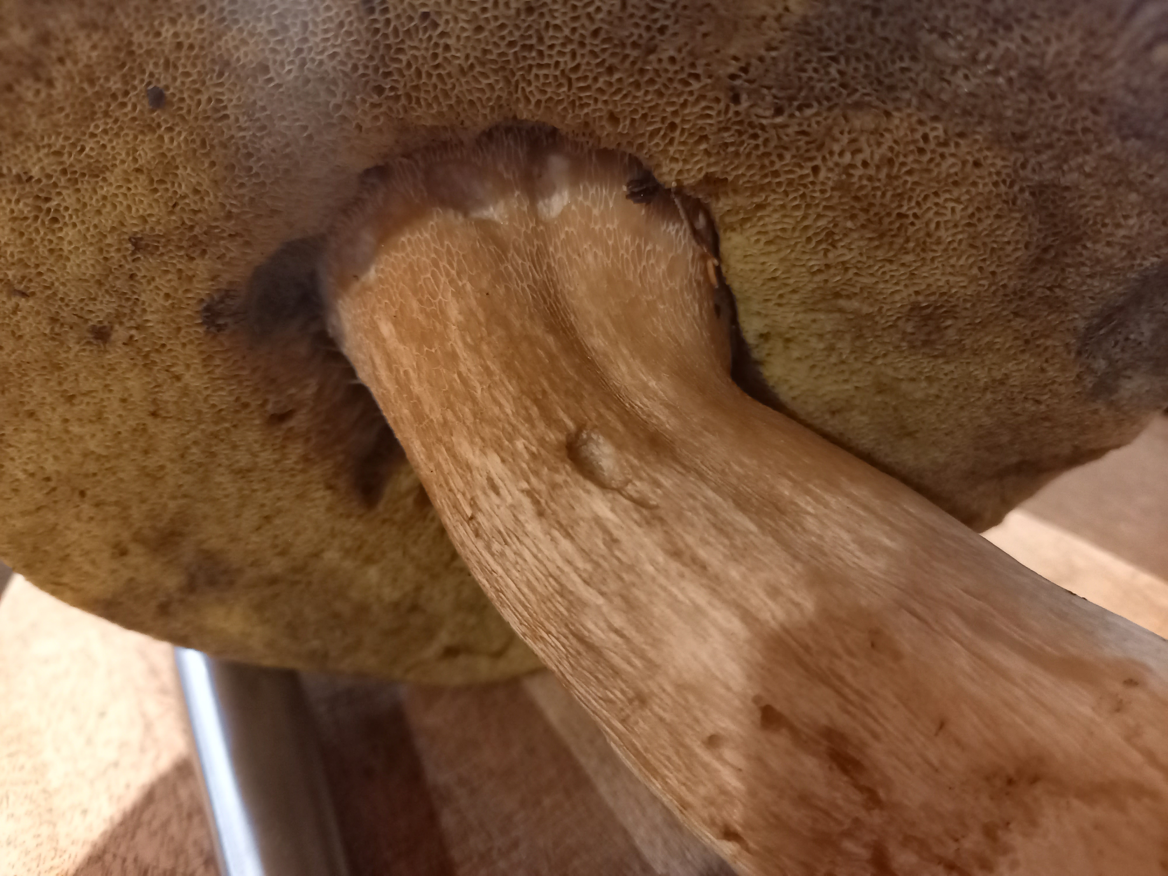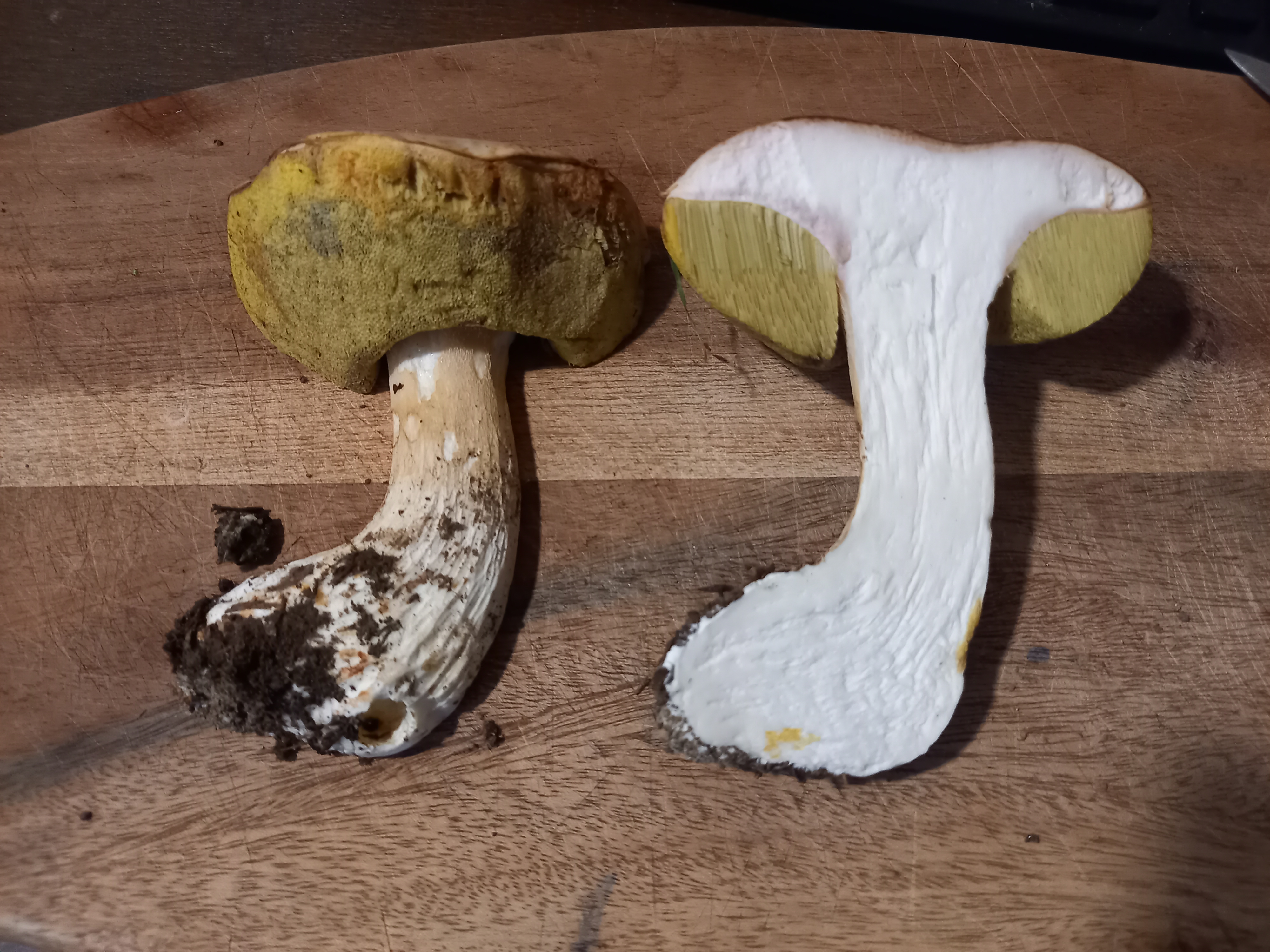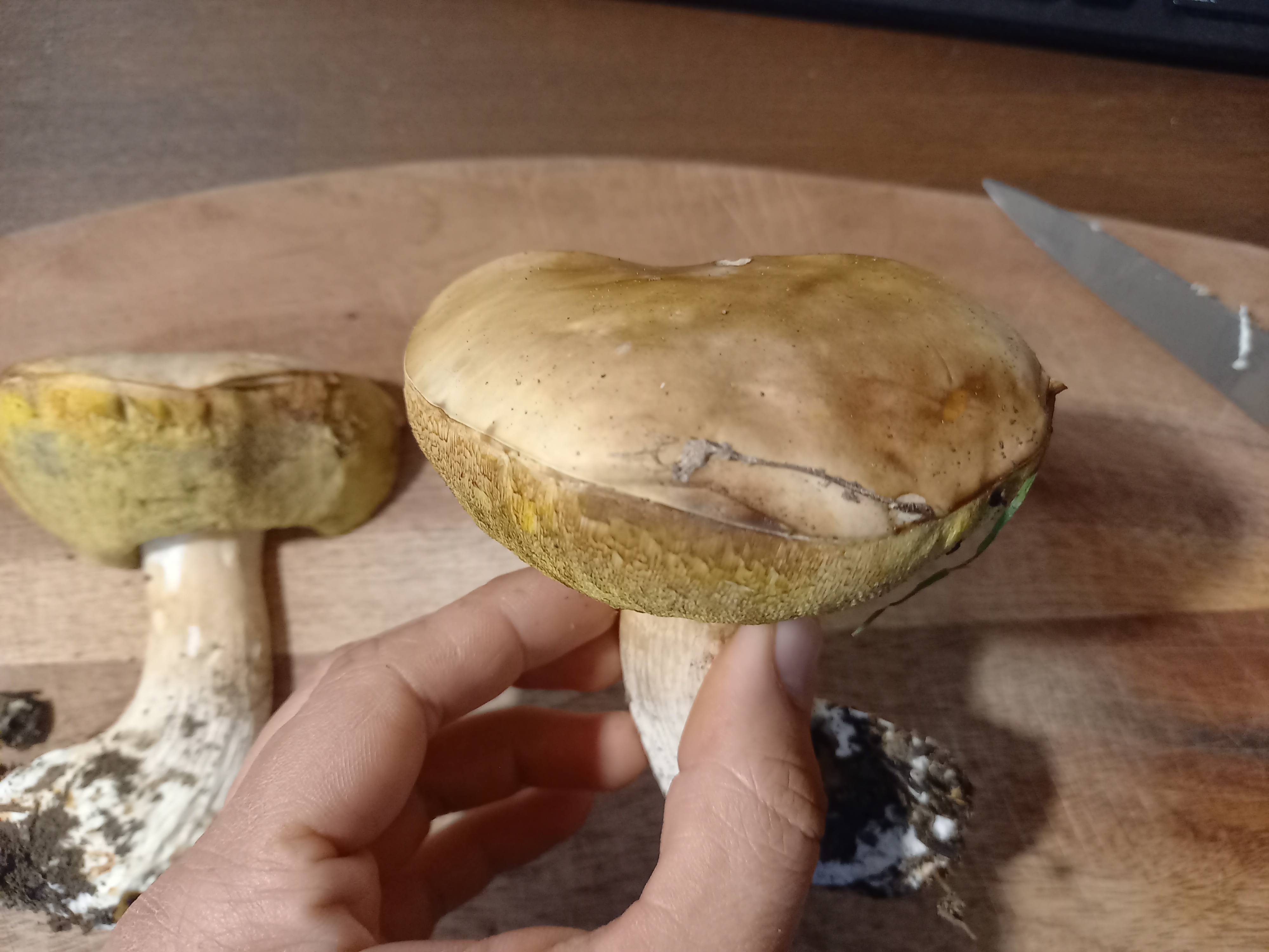 Le gros avait une texture très "marshmallow" pour le chapeau et un peu cassante/filandreuse pour le pied (l'âge?). Pour les deux, goût (cru) assez faible, ni amer ni piquant. Pas le moindre ver dans les 2 spécimens, y compris le gros. Pas de bleuissement au toucher.