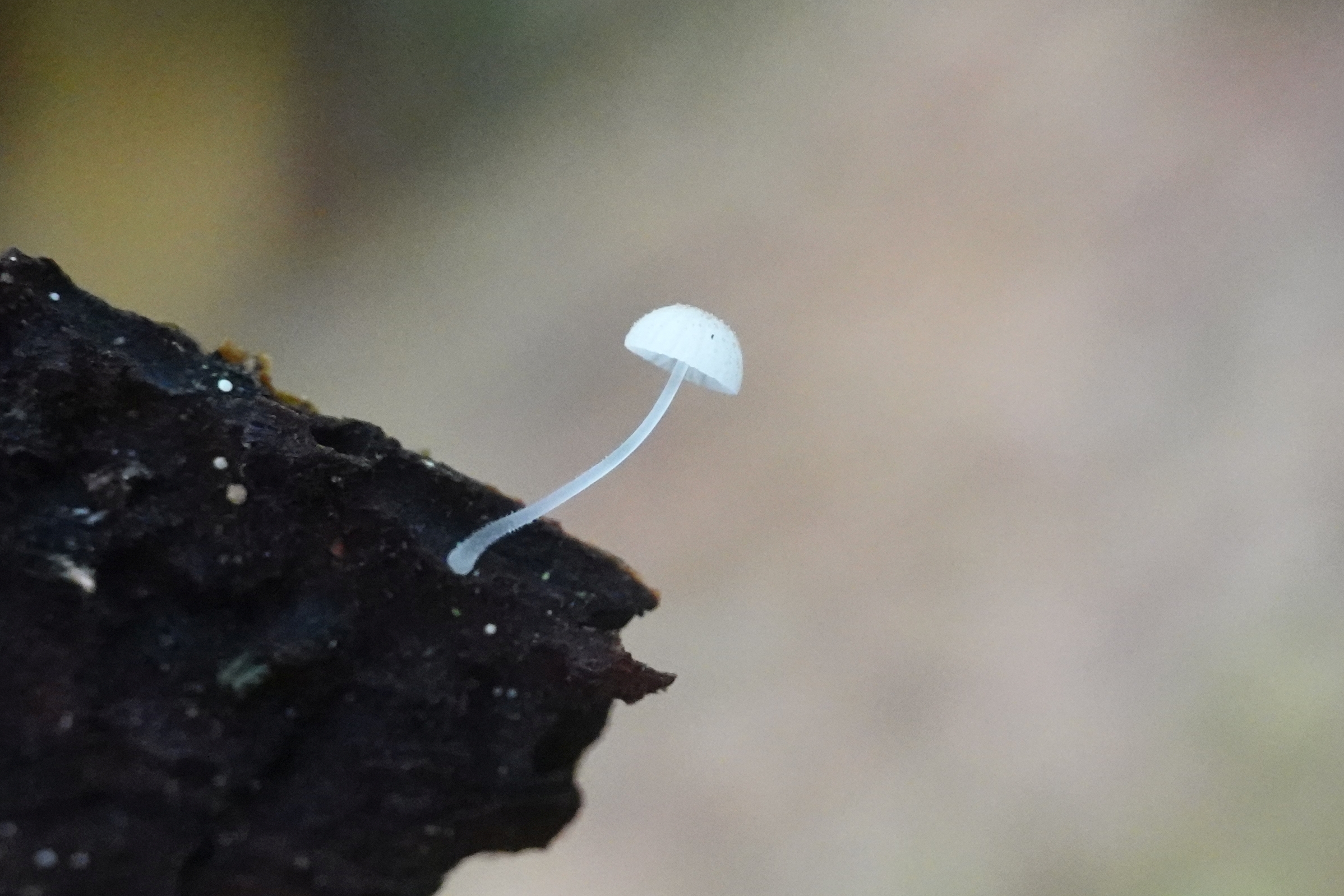 Re: Minuscule champignon blanc/translu sur écorce résineux