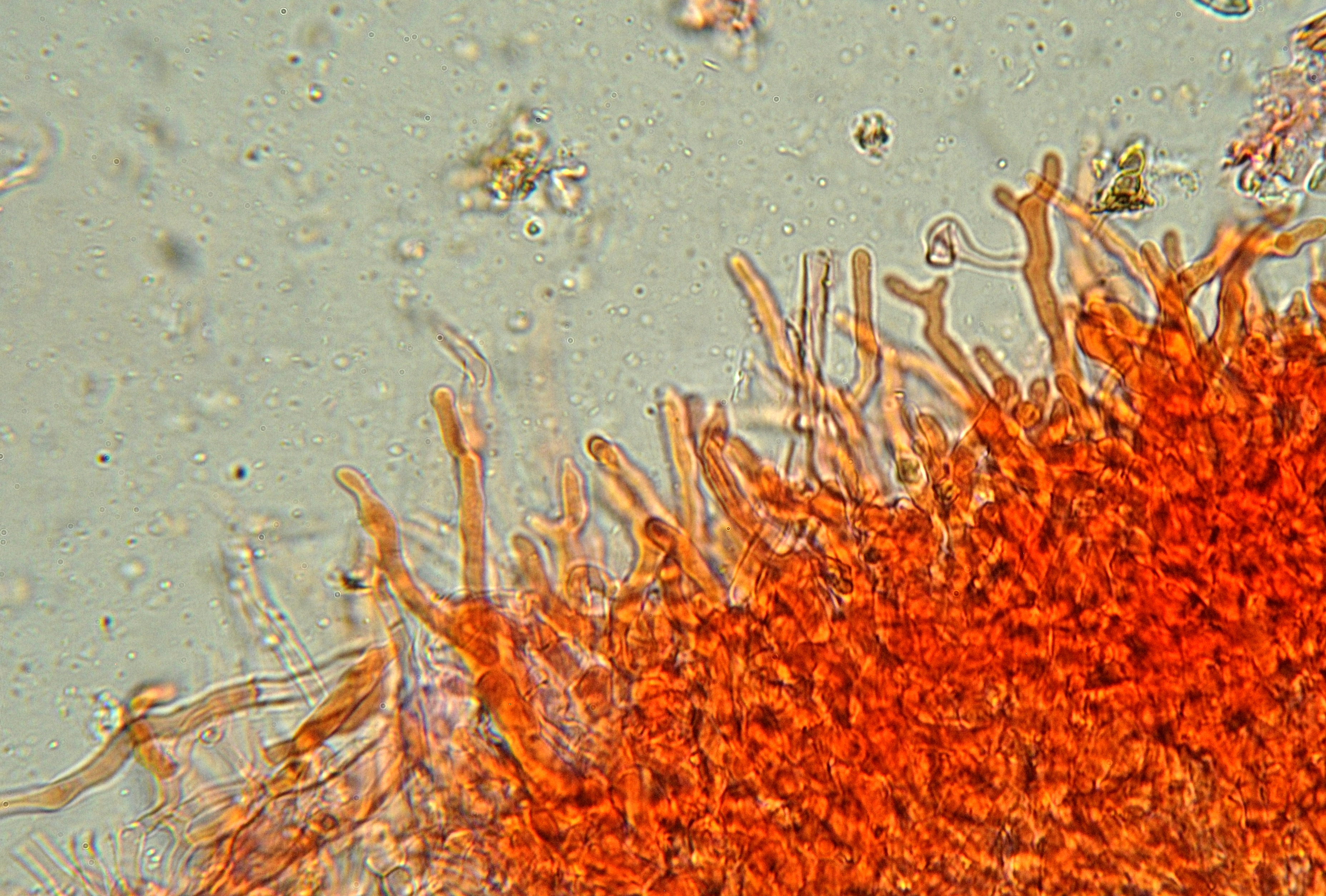 Bonjour, Merci pour les nouvelles investigations. Les basides semblent vraiment très petits ! L'aspect de l'hyménium n'est pas très clair d'après moi. Je passe la main.