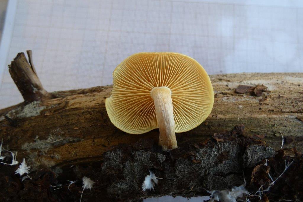 Oui mais il n'empêche que les amas blancs ne sont pas reliés au pied du champignon, ils semblent indépendants de lui et surtout ont une surface porée. Tu peux essayer une micro et peut-être verras-tu au moins des spores, si le champi est suffisamment mûr. Pour ça, dépose l'amas blanc sur une lame de verre, face porée contre le verre, et laisse sporuler 1 journée. Michel.