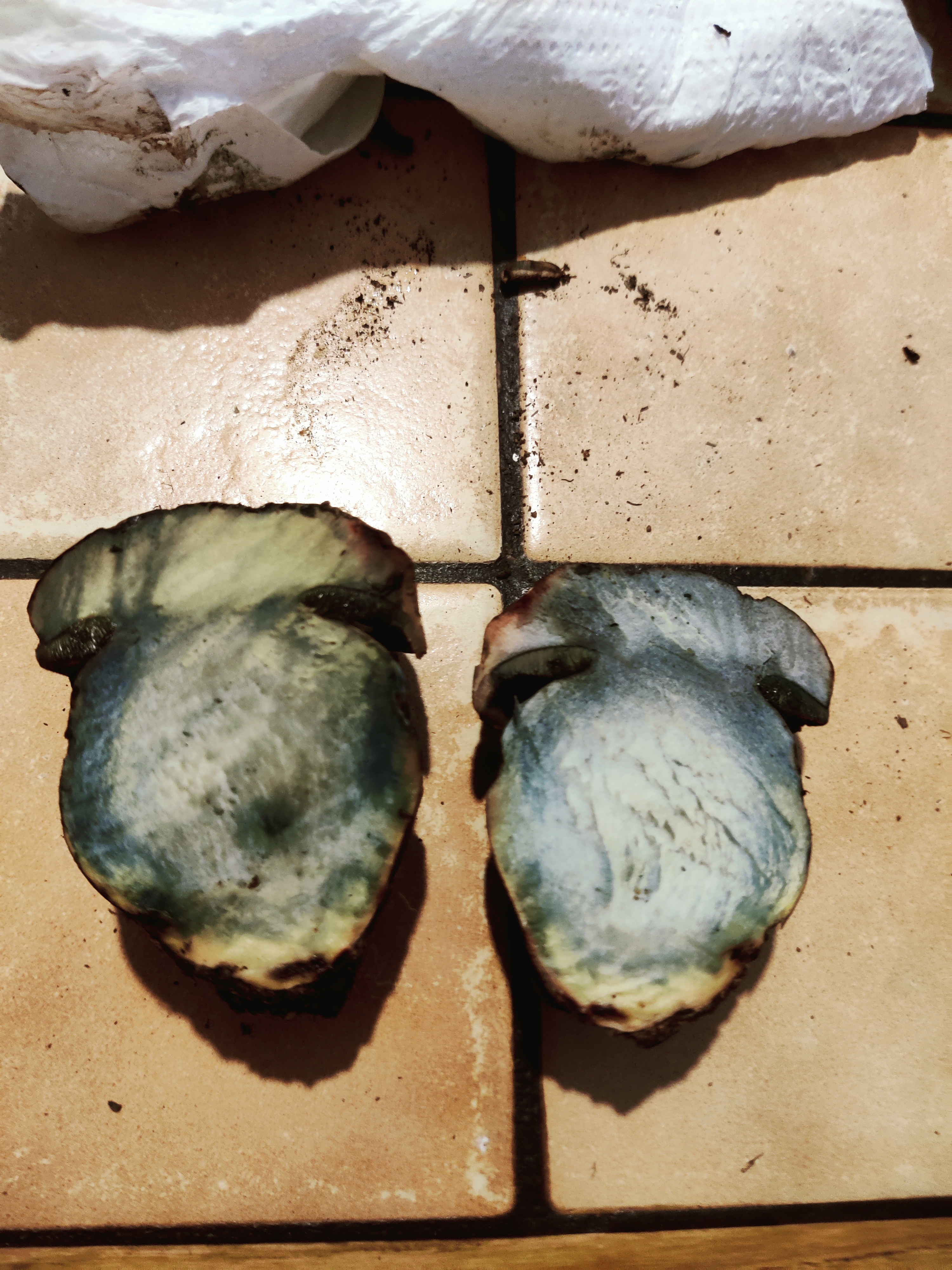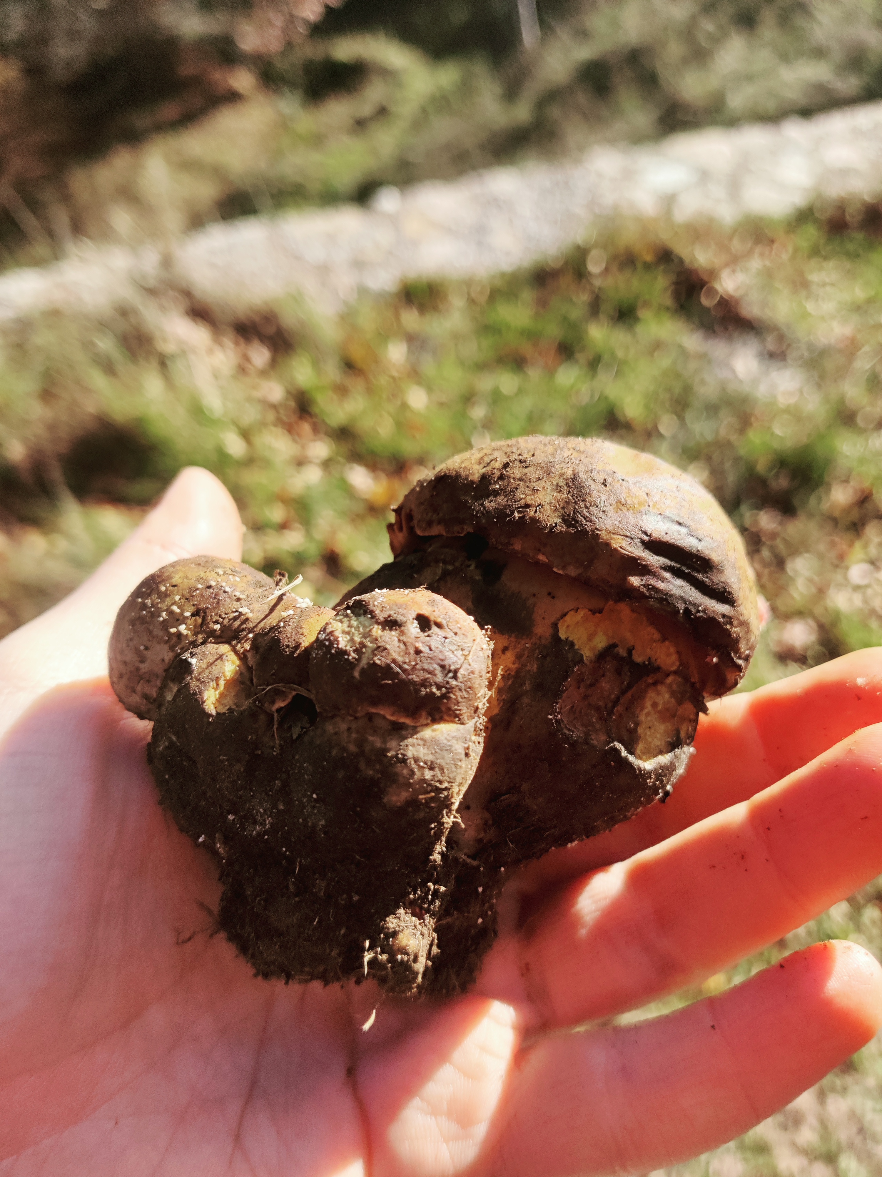 J'ai trouvé ce "groupement" de champignons le long d'un chemin, à proximité d'une forêt de conifères et feuillus. De par la couleur du chapeau, des pores, du pied, du bleuissement et de l'odeur peu présente, j'aurais tendance à dire qu'il s'agit de bolets à pied rouge. Mais dans le doute, j'ai fais 4 pharmacies, qui m'ont dit de jeter car ils connaissaient pas... Pourriez-vous me confirmer l'identification ? Avez-vous besoin d'autres photos ?