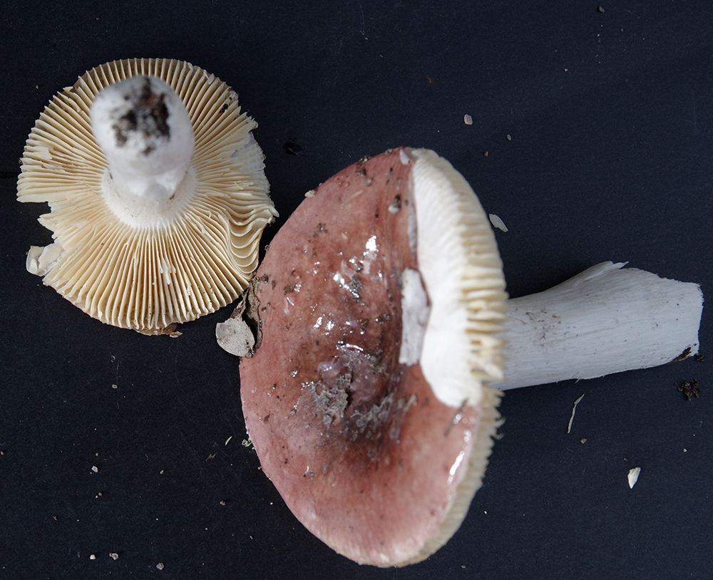 Bonjour, je sais qu'une Russule est difficile à déterminer sur une photo. Tant pis je me lance, depuis trois jour je feuillette, je réfléchie avec mes moyens. Plusieurs pieds le long d'un sentier en bordure d'étang sous futaie de Chênes d"Amérique, quelques charmes et Epicéas. D'abord je vois un net contraste entre le blanc immaculé du pied et le jaune des lames, la cuticule rouge pourpre se soulève dégageant le blanc du chapeau. Pas de goût amère, pas d'odeur particuilière. Le pied est compressible et creux. C'est une belle Russule avec ces contrastes de couleurs (blanc, jaune, rouge) Est-ce