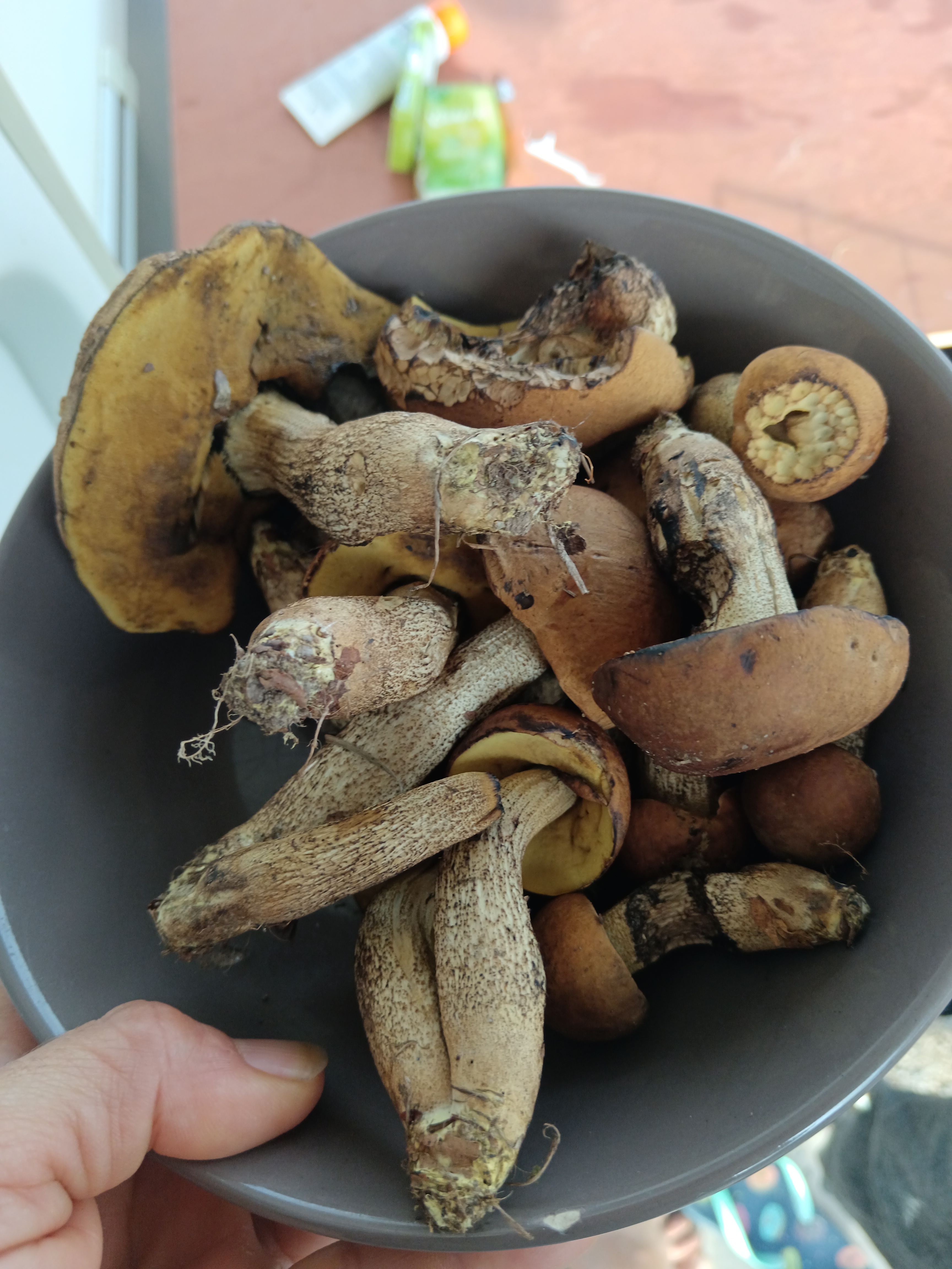 Quelqu'un sait il quel sorte de bolet ? En bordure de bois plutôt feuillu. Ce n'est pas bolet roux, ni bolet orangé... En fait d'après ce que j'ai lu ça y ressemble mais ce qui diffère c'est que sous le chapeau c'est jaune et non blanc. Noircit a la cassure.