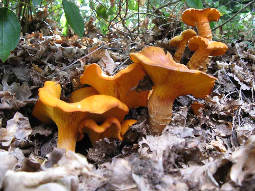 Pour info, voici quelques images de la vrai fausse girolle, Hygrophoropsis aurantiaca au coté d’une vrai Girolle, je pense à Cantharellus amethysteus, mais sans certitude. Les photographies ont été faites le 25 octobre de cette année.