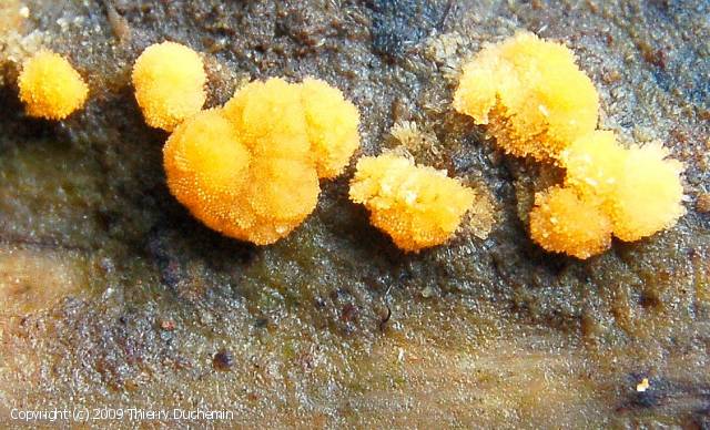 Sporodochies jaune citron, 0,2-0,5 mm de diamètre.